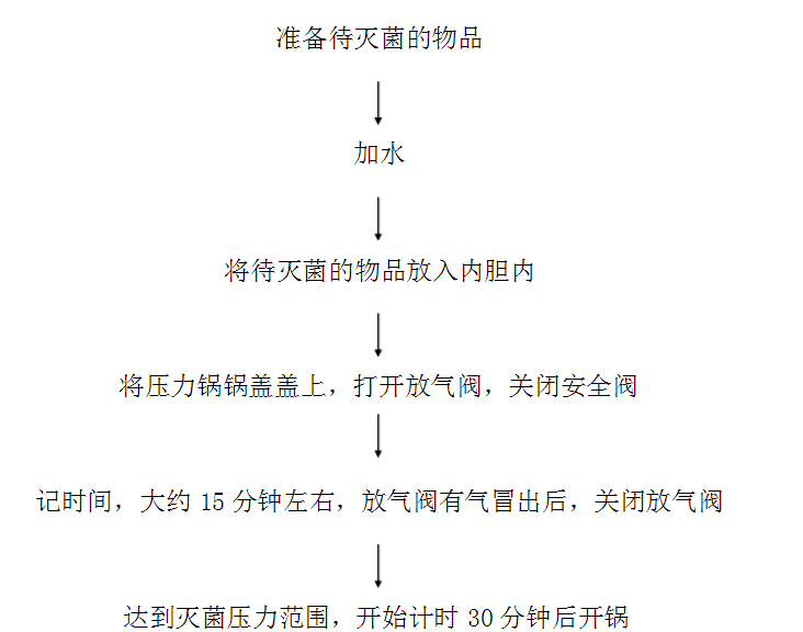 7. 放于加熱器兩側(cè)進(jìn)行烘干,不可直接放于烘干器上覆蓋,以免發(fā)生意外。 8. 打開(kāi)安全閥及放氣閥,待氣放盡后,擰開(kāi)鍋蓋,取出無(wú)菌物品。 9. 無(wú)菌物品烘干后及時(shí)放入無(wú)菌柜內(nèi)保存。